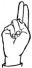 На ћирилици написано МАША ГАГОВИЋ састоји се из 11 слова [?]. Исписано ћириличном једноручном азбуком за глувонеме: